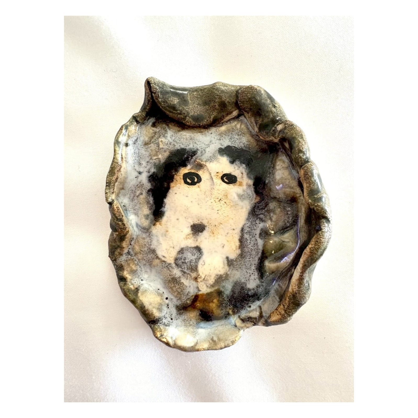 【プロフィール】街に転がるコンクリート片、こぼれたペンキ、錆びた金属、路上のゴミ。そういった、街にありながら見過ごされがちなものをモチーフに、顔のある像を描いています。日々の中で目にするそれらには、労働の痕跡や惰性のようなものが象徴されていて、ふとこちらを俯瞰して見ているように感じることがあります。私はそれらに共感し、絵の中で自分の汚点に寄り添う像をつくり、誰にでも開かれ、差し出される、シンプルな祈りの形として顔を描いています。