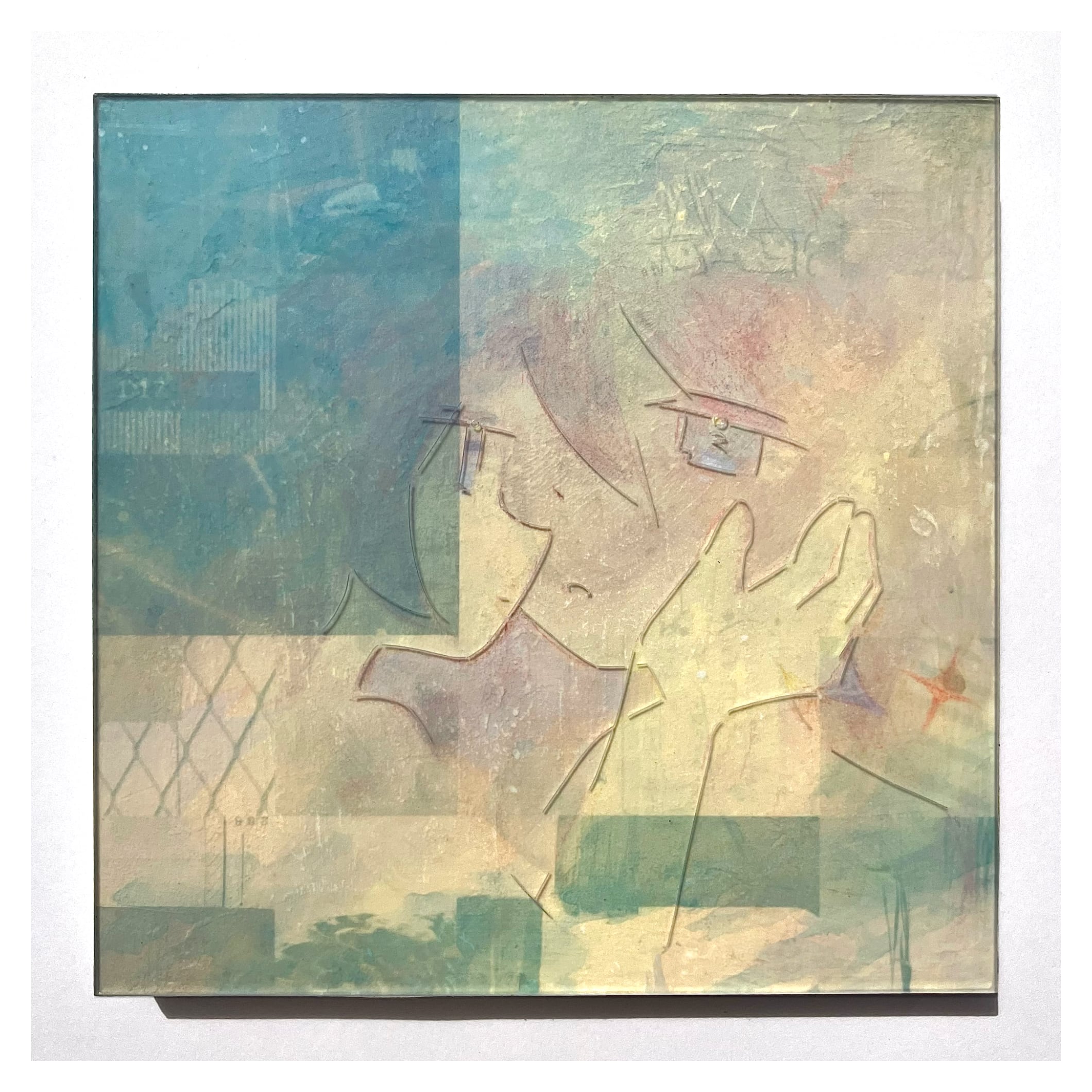 パネルにジェッソ、アクリルガッシュ、色鉛筆、パネル、アクリル板