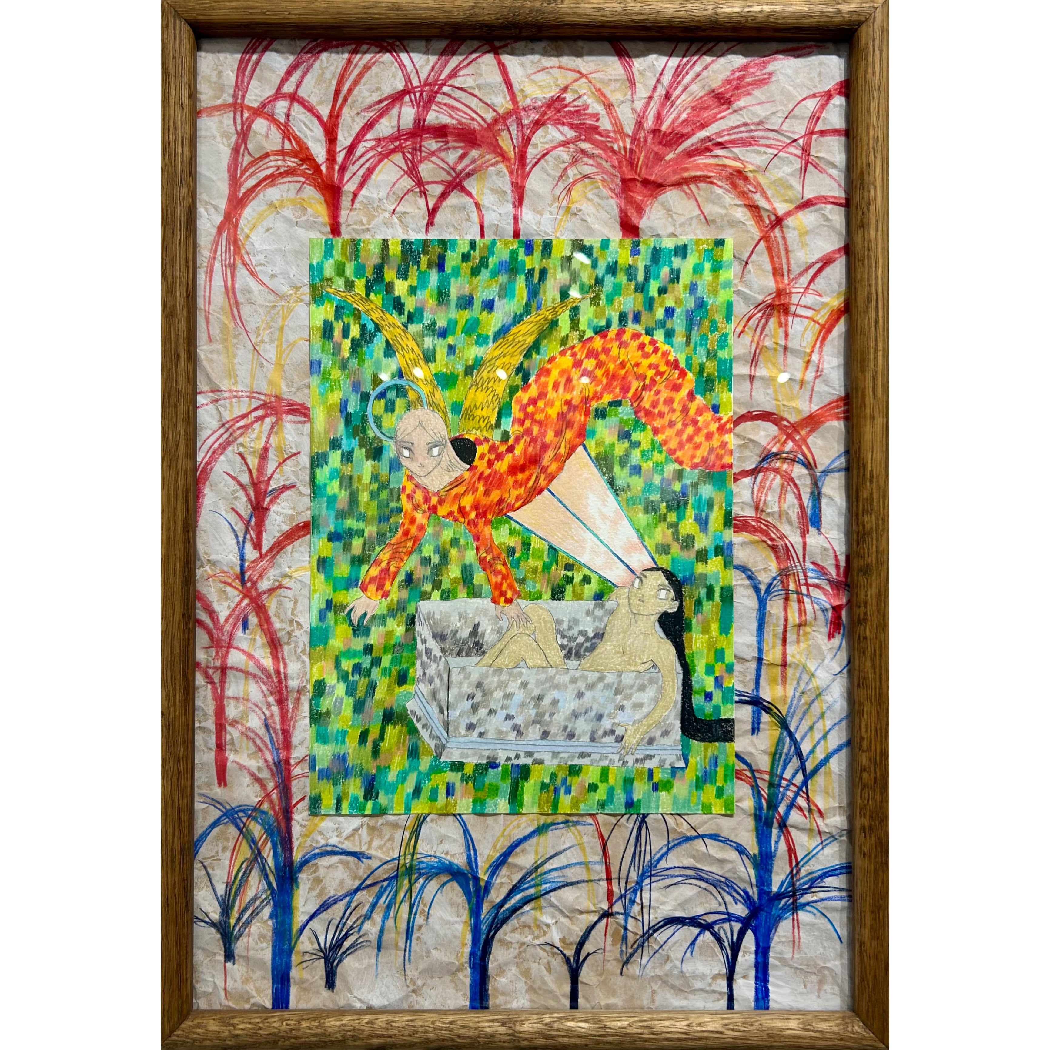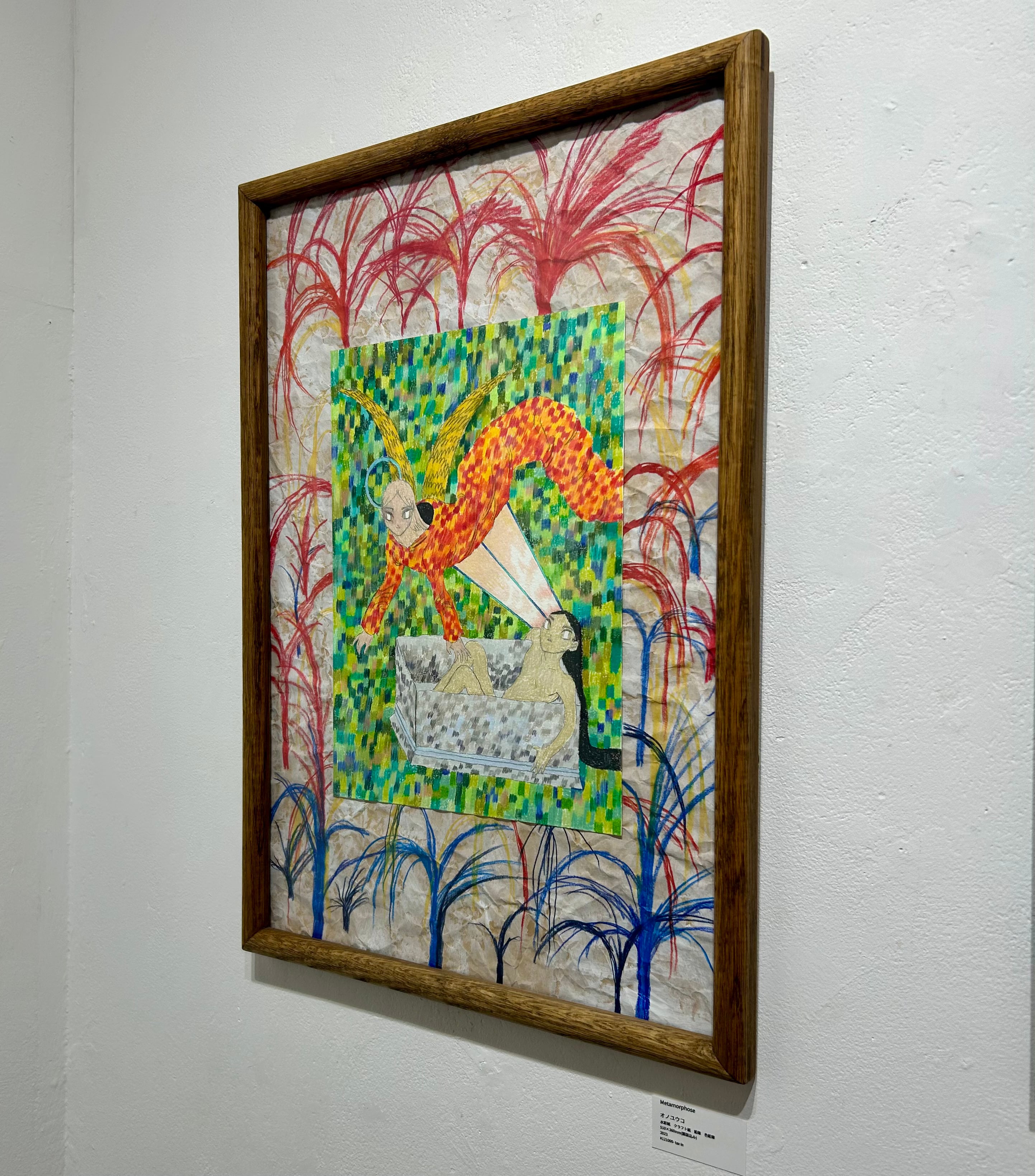 ※この作品は、作家の想いを大切にしていただける方へお届けしています。転売などに関するお願いがございますので、ページ下部の「作品の取り扱いについて」をご一読ください。 オノユウコ Metamorphose 水彩紙 クラフト紙 鉛筆 色鉛筆 510×360mm(額装込み) 2023 121000 作品の取り扱いについて(転売やオークション出品に関するお願い)この作品は、作家の想いや作品の価値を大切にしながら、購入者ご本人による長期的な鑑賞を前提としてお届けしております。そのため、ご購入から3年間は、第三者への転売や譲渡、オークションサイト・フリマアプリ等への出品はご遠慮ください。以下の点につきましても、あらかじめご理解とご協力をお願い申し上げます:1. 上記行為が確認された場合、今後のご購入をお断りさせていただくことがあります。2. 万一、当店または作家に損害が生じた場合は、法的手続を含む対応を取らせていただく場合がございます。3. 出品や転売を通じて取得された作品については、サポートや保証の対象外となります。このお願いは、作品の背景にあるストーリーや価値が、一時的な取引によって損なわれないようにするためのものです。 ご理解のうえ、お迎えいただけますと幸いです。