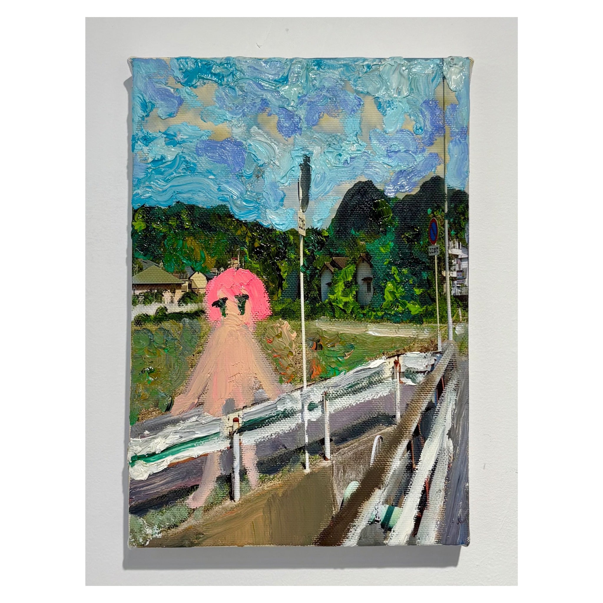 2000年福岡県生まれ2024年九州産業大学芸術学部卒業 自我、キャラクター、風景、記憶について考えながら描いています。自分が出かけた先や、日常の中で印象に残ったシーンを撮影した写真をキャンバスにプリントし、その上から油彩でペイント。「鮮明な記録が曖昧な記憶」に変化していく様子を表現しています。また、この作業は日常とは災害や事故、戦争などでたちまち様変わりする、昨日と同じ今日が来ることはなく、永遠に変わらないものはこの世に存在しないのだ、ということを認識する作業であるとも感じています。世界は理不尽や残酷なこともあるけれど本来、世界というものは美しいことを忘れないでいたいです。