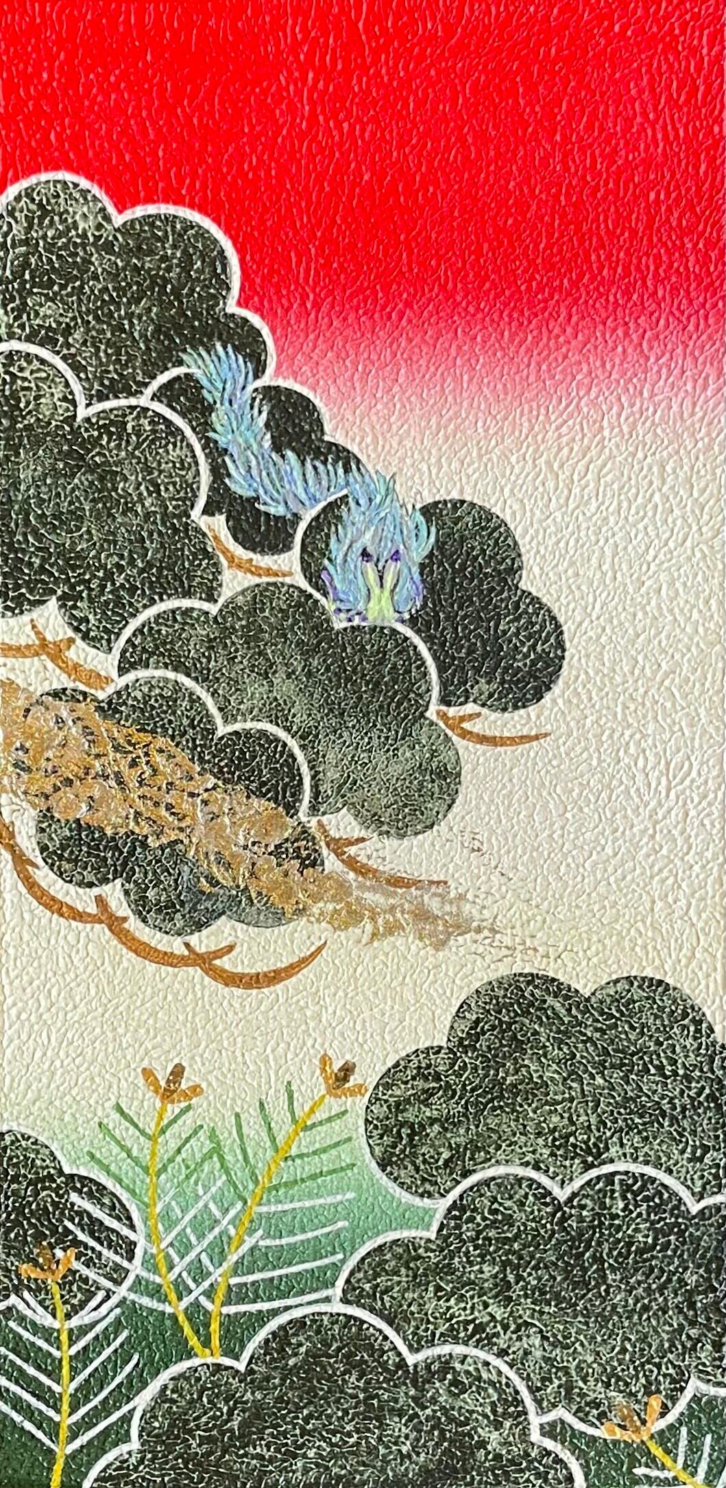 1987年大阪府生まれ。20代で出会ったウミウシに魅了され、その住む世界を、幼い頃から親しんできた日本の伝統文様と重ね合わせて描いている。松や雲、波といったモチーフとウミウシを行き来させることで、装飾的な美しさと生きもののリアリティ、過去と今、個と他者の感覚が緩やかにつながっていく。伝統的な意匠を手がかりに、新しい響きや共鳴を探る場として絵画に向き合っている。 "