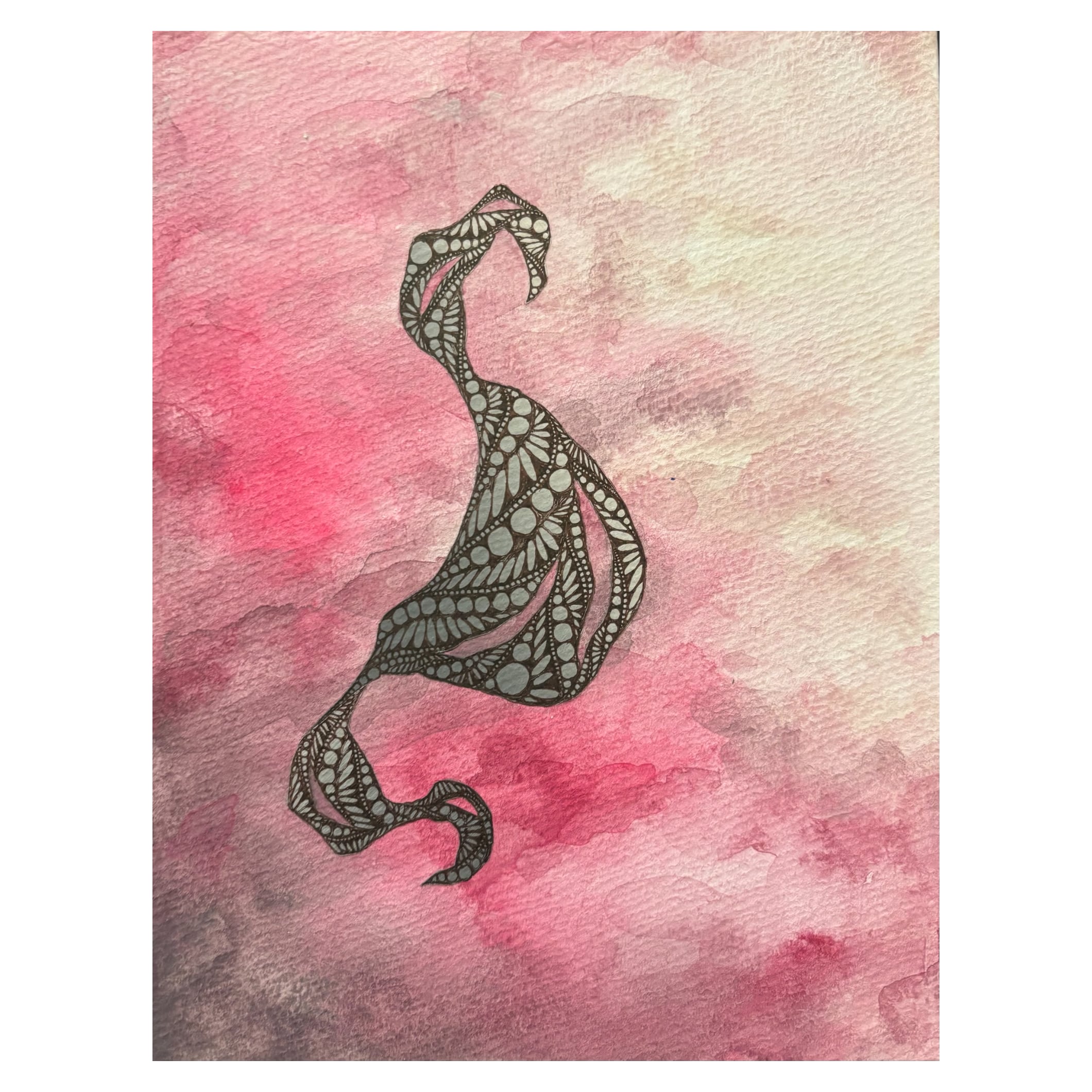 アクリル・ボールペン・水彩紙・木製パネル
