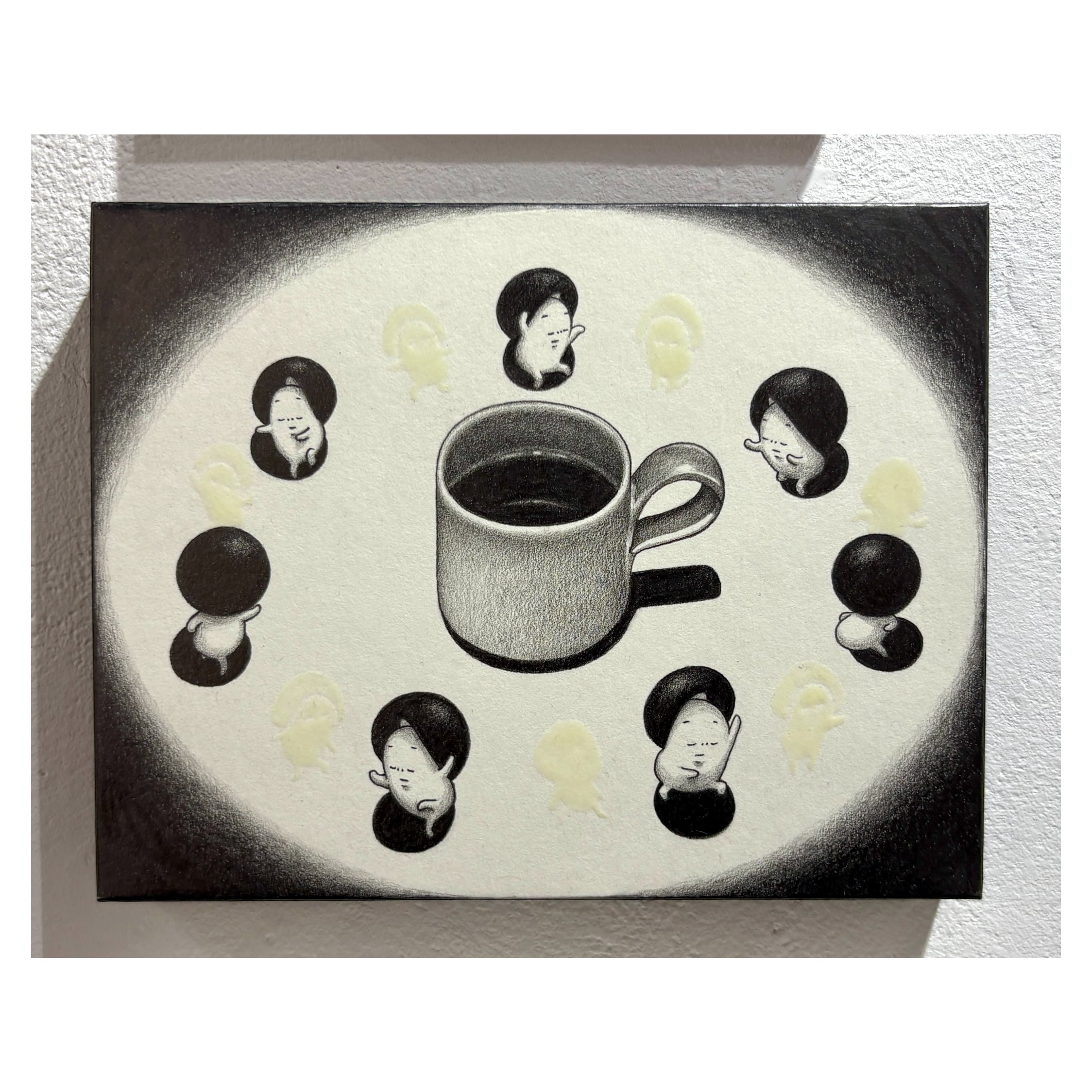 白黒にて感情や状況を表す漫画表現に拘りたい思いから、2023年より鉛筆にて展示作品を制作