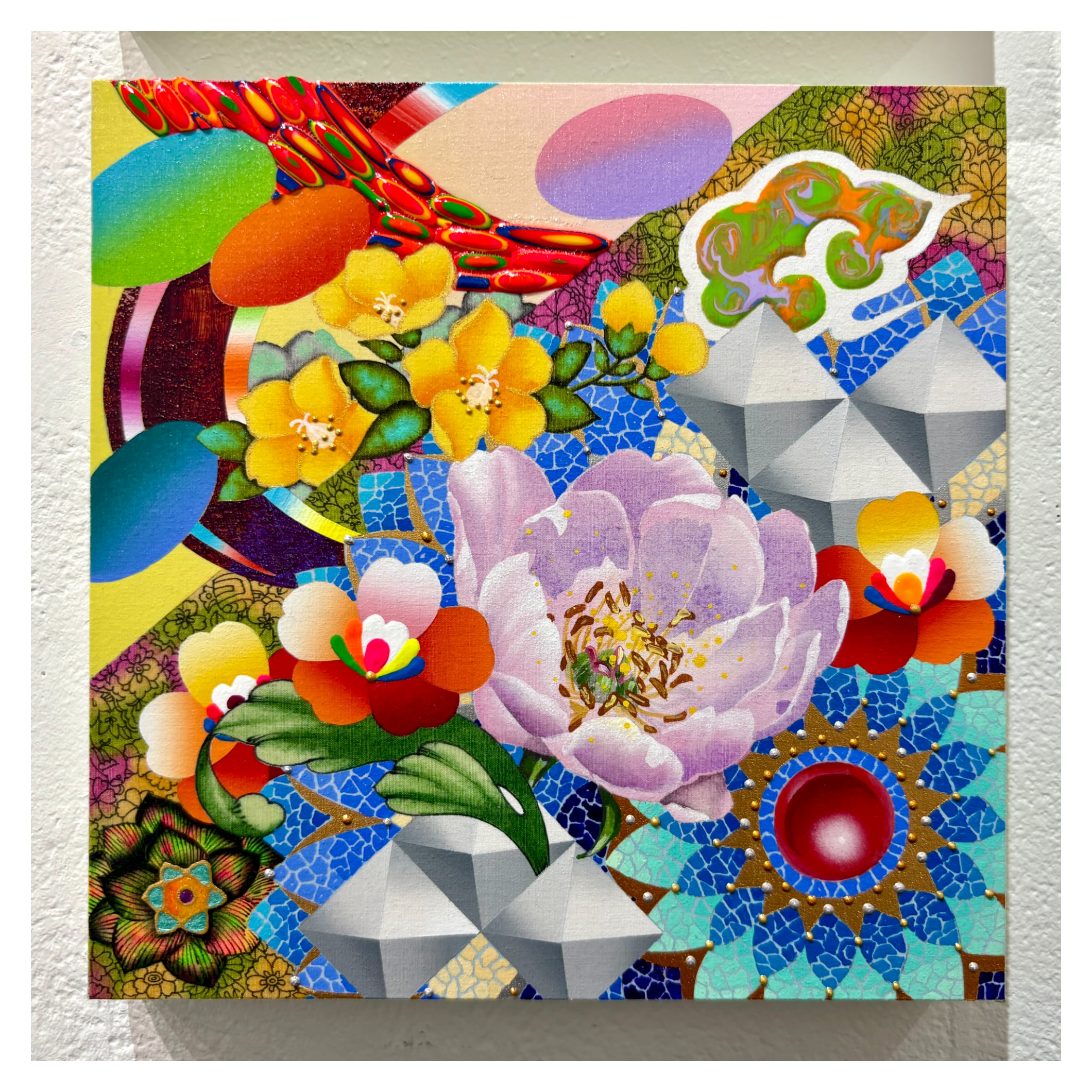 アクリル、ペン、綿布、パネル