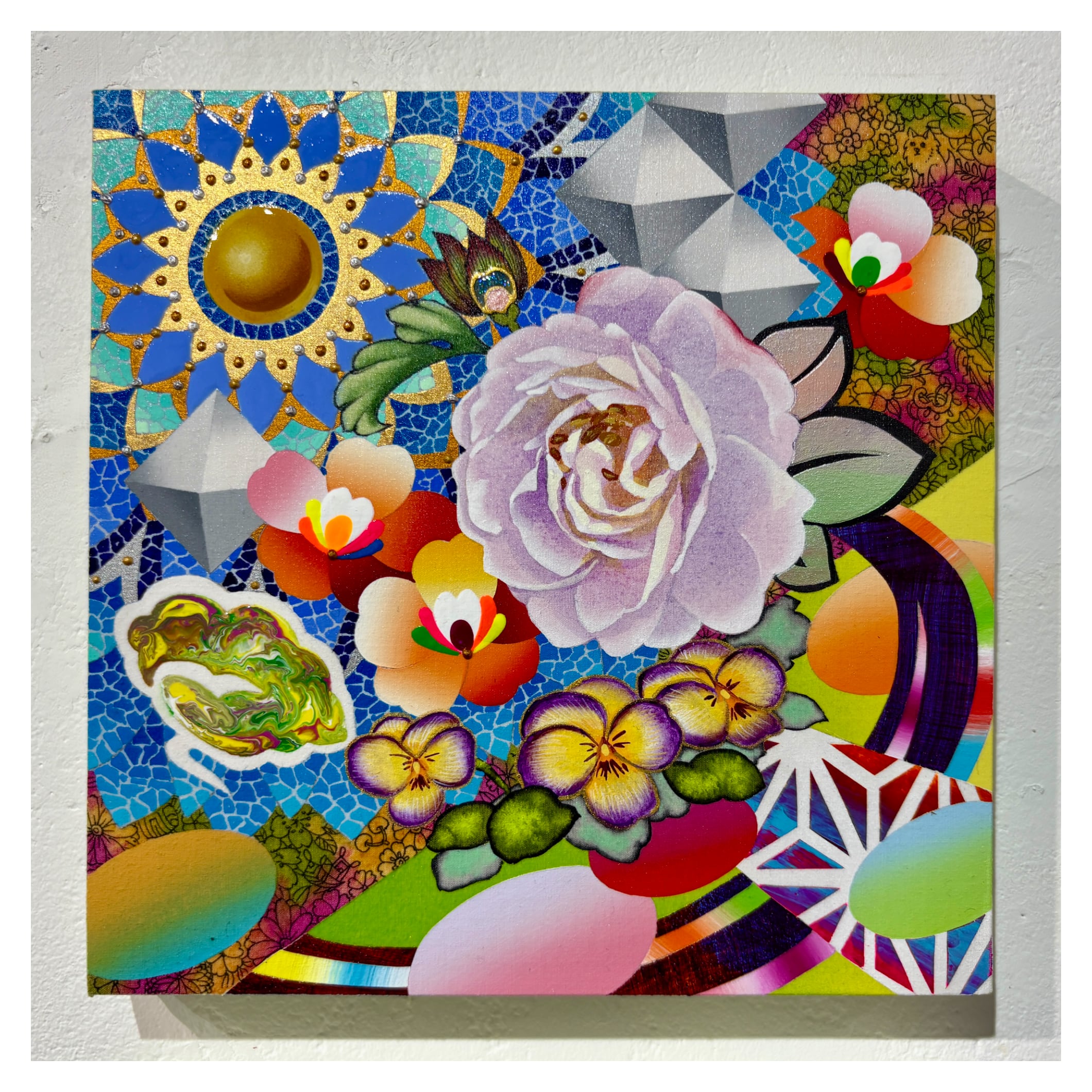 アクリル、ペン、綿布、パネル