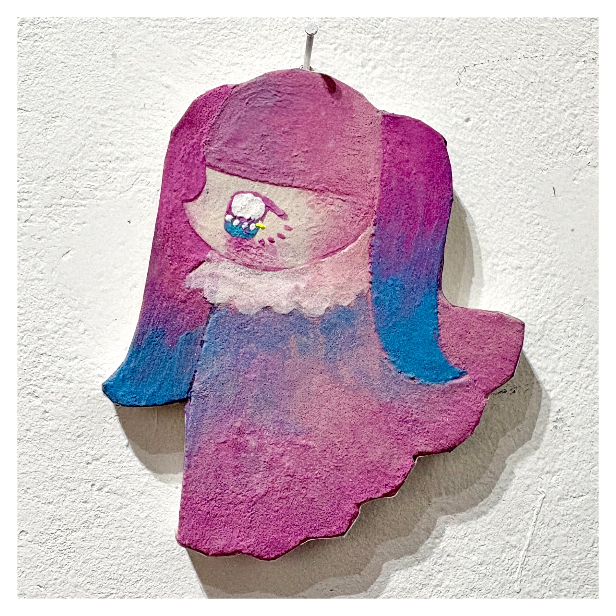めにみえない存在を、「こうだったらいいな」と考えながら、岩絵具のキラキラとザラザラで描いています。