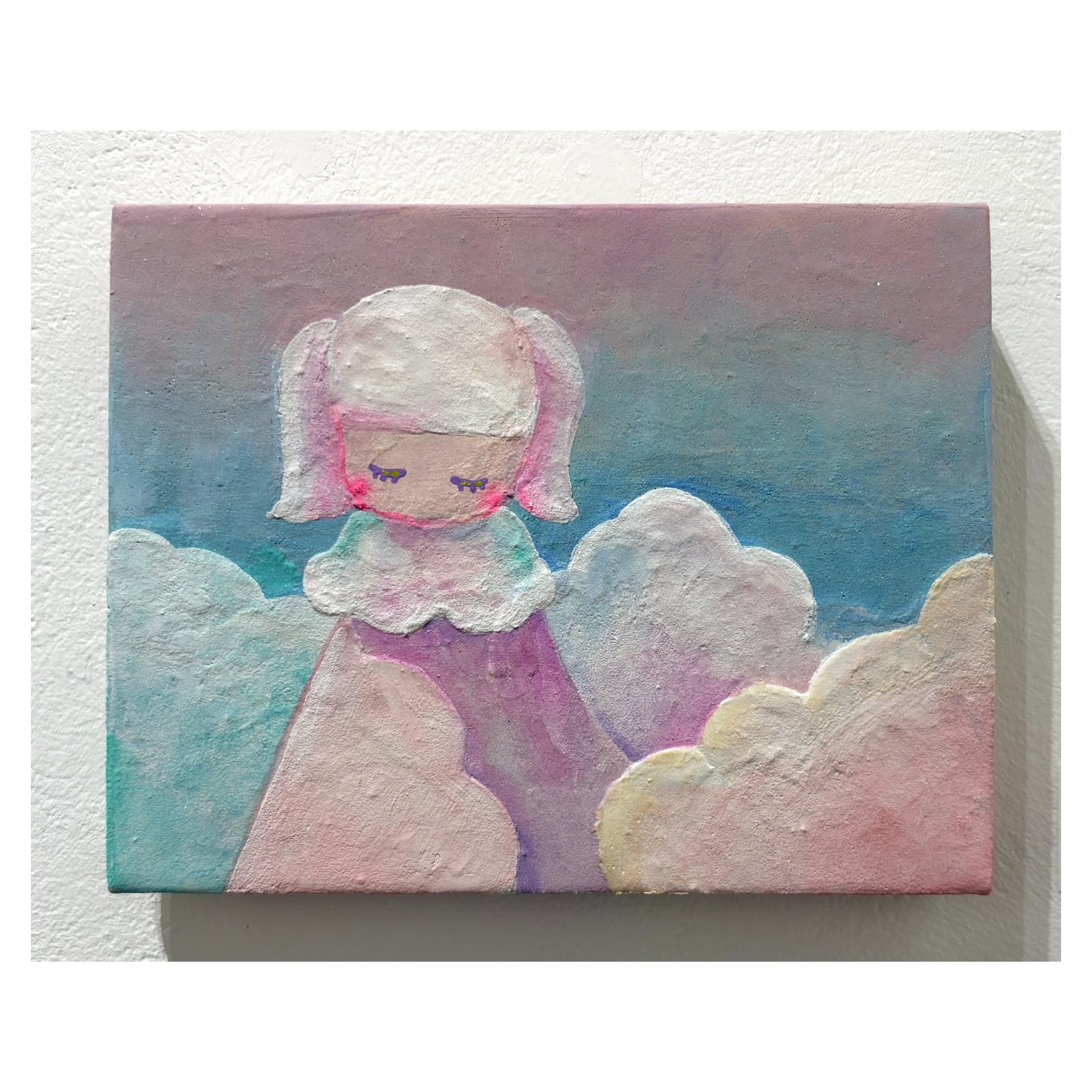 めにみえない存在を、「こうだったらいいな」と考えながら、岩絵具のキラキラとザラザラで描いています。
