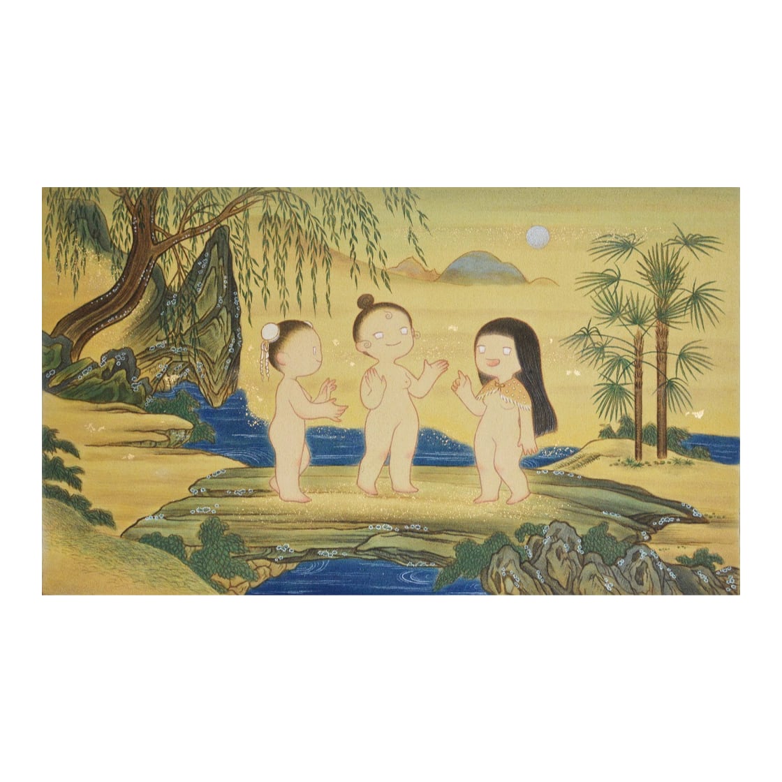金箔、水干絵具、アクリル絵具、モデリングペースト、木製パネル242×410mm