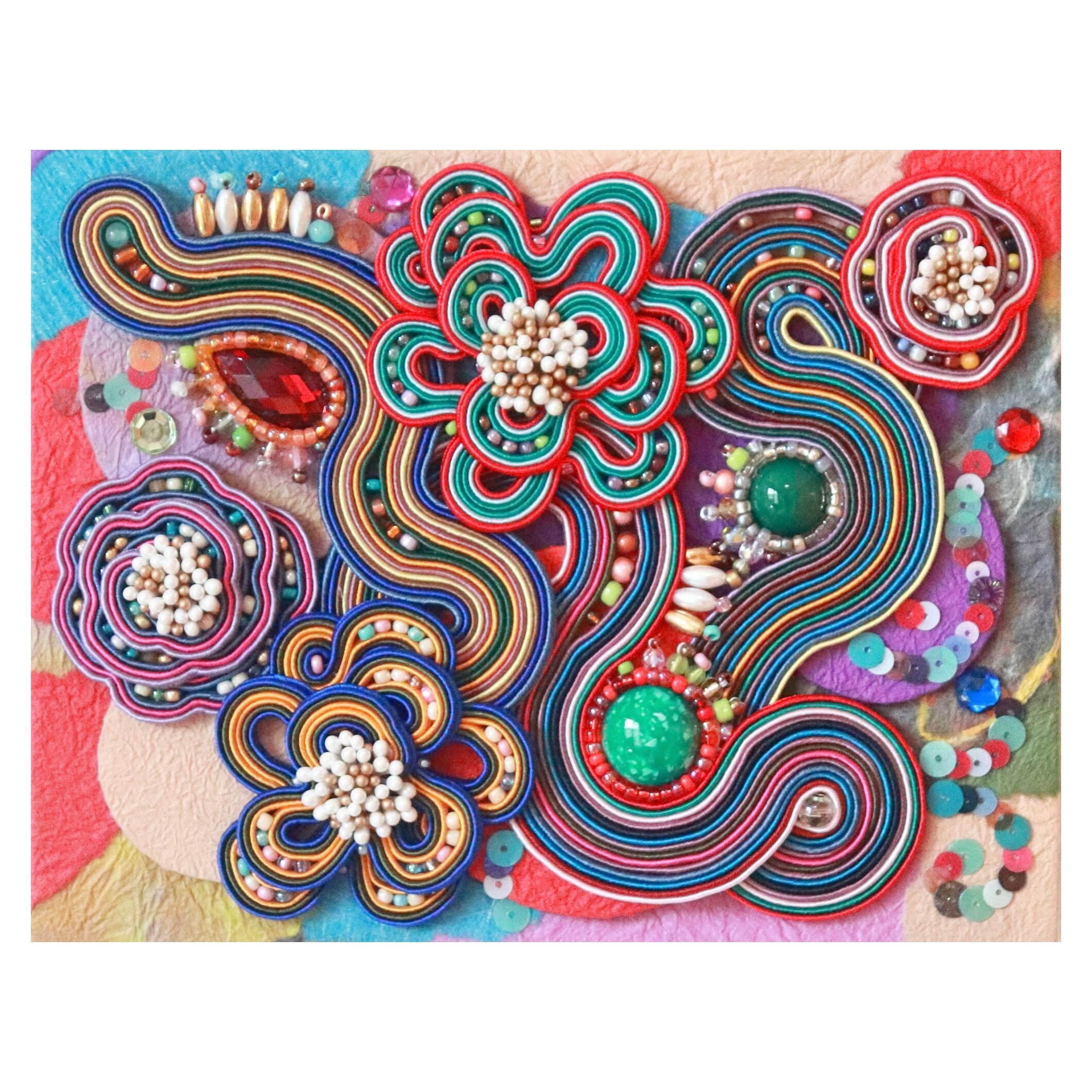 紐類、ビーズ類、和紙、スチレンボード、ペップ、木製パネル140×180mm