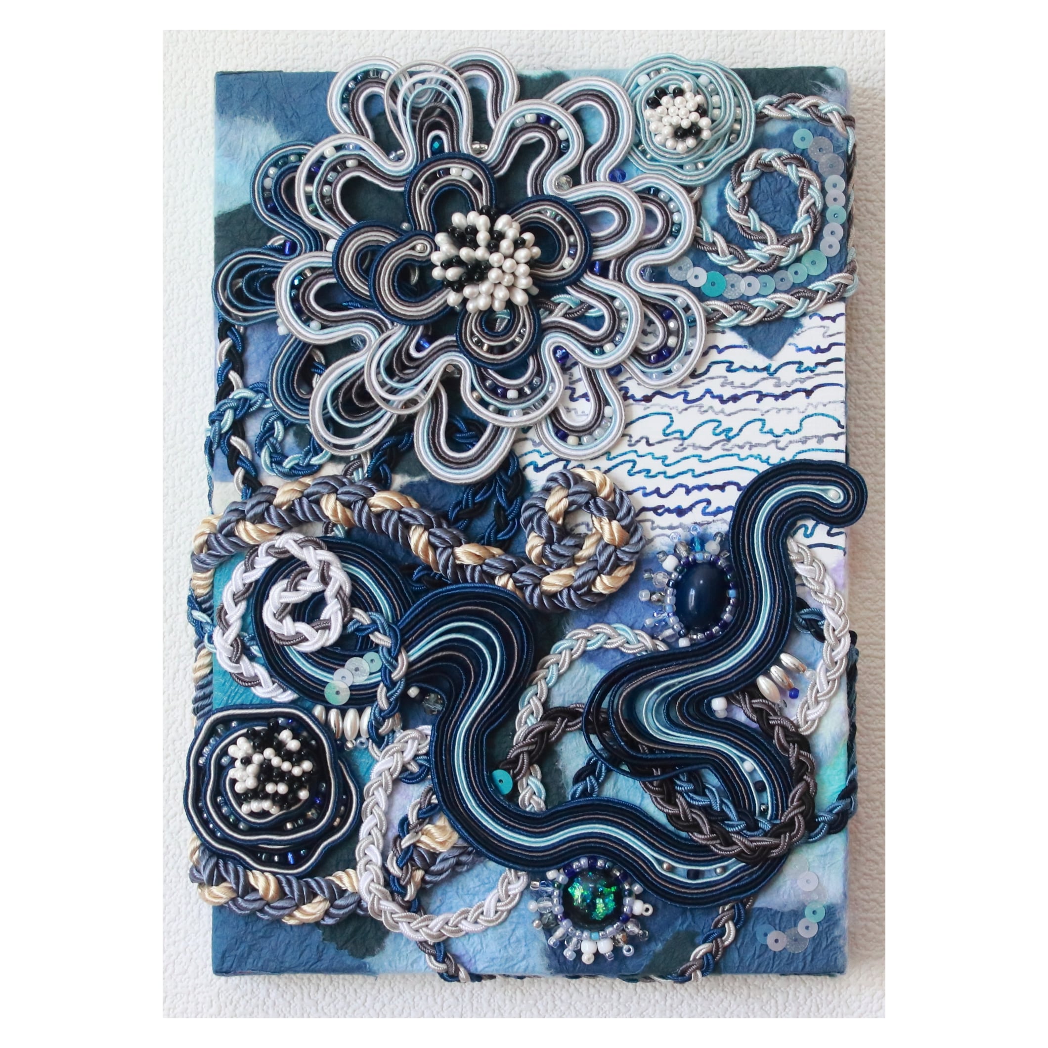 紐類、ビーズ類、和紙、ペップ、インク、木製パネル233×176mm