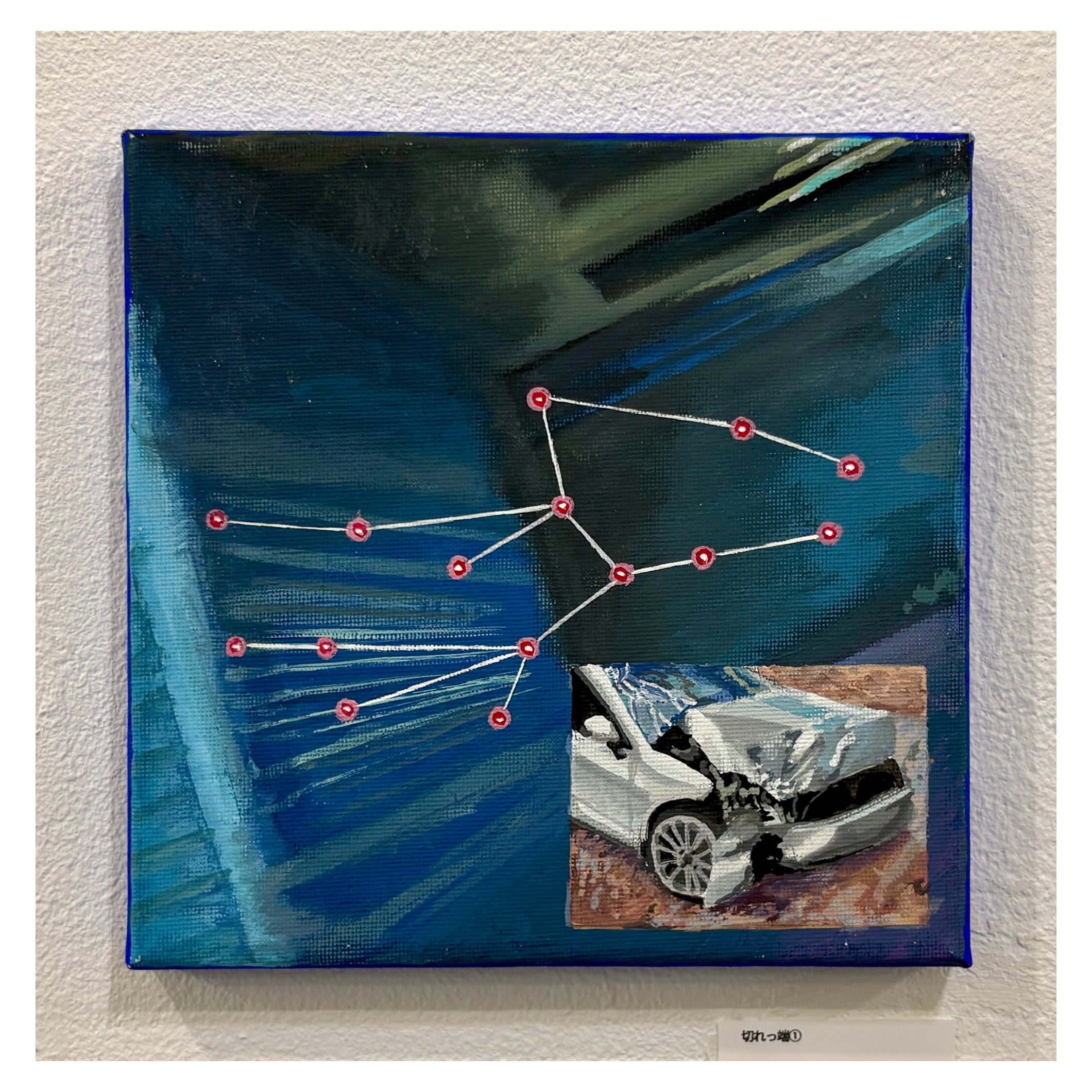 切れっ端③ ちがいほうけん キャンバスにアクリルガッシュ180×180mm 22000 2006年 京都府出身 デジタルネイティブ世代が生まれて以来日にし続けているレイヤーされた世界の不条理な美しさの表現を目指す。 https://www.instagram.com/tigai_houken?igsh=cnNmcm1zYndtcGJt&utm_source=qr https://x.com/tigai_houken?s=21