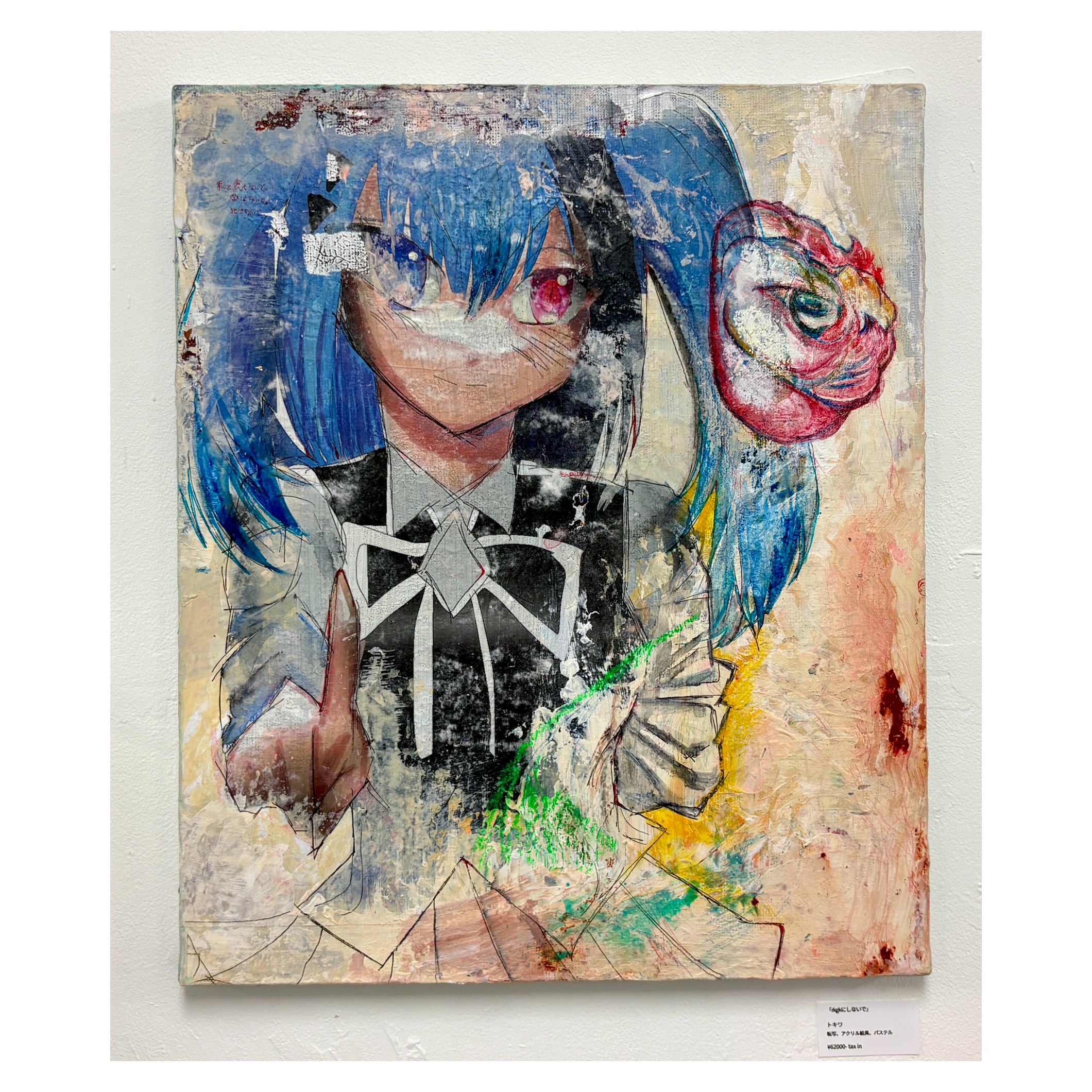 2001年山形県生まれ 東北生活文化大学美術学部卒業 キャラクターをモチーフに、デジタルとアナログを往復しながら制作している。描かれるキャラクターは、強く、美しく、気高い理想の存在であり、強い視線は静かな怒りや感情を内包している。 絵具による加筆や布を縫い合わせて再構築する行為は、その理想像に少しでも近づきたくて行なっている。いずれか一体化したい。