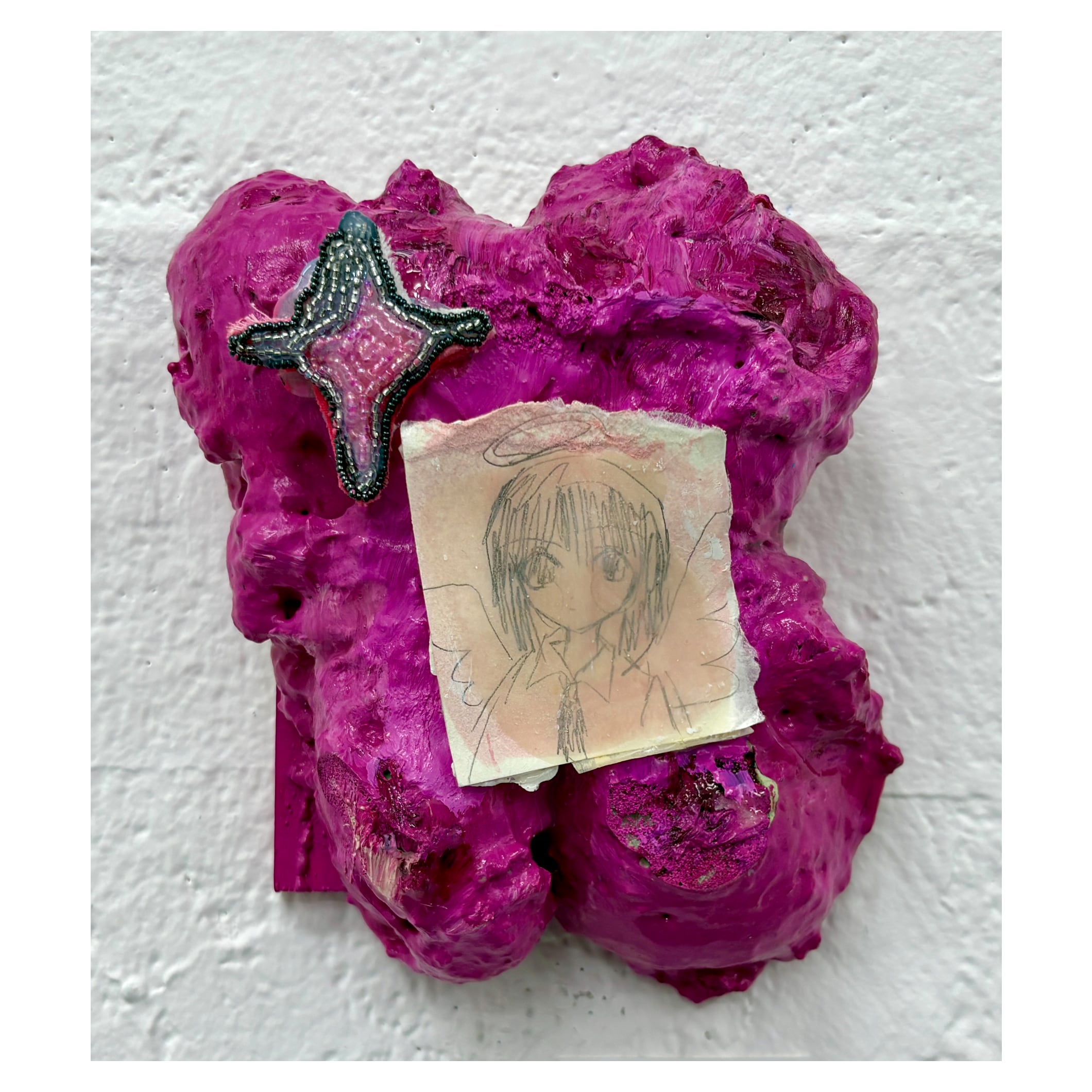 ユ、六萠(ゆ、ろも) yoo romo 1999 広島県生まれ 2019 嵯峨美術短期大学 美術分野洋画・現代アート領域 卒業 宝物、鉱物のような作品をイメージしながら、 キャラクターを用いた絵画×半立体の作品を制作しています。