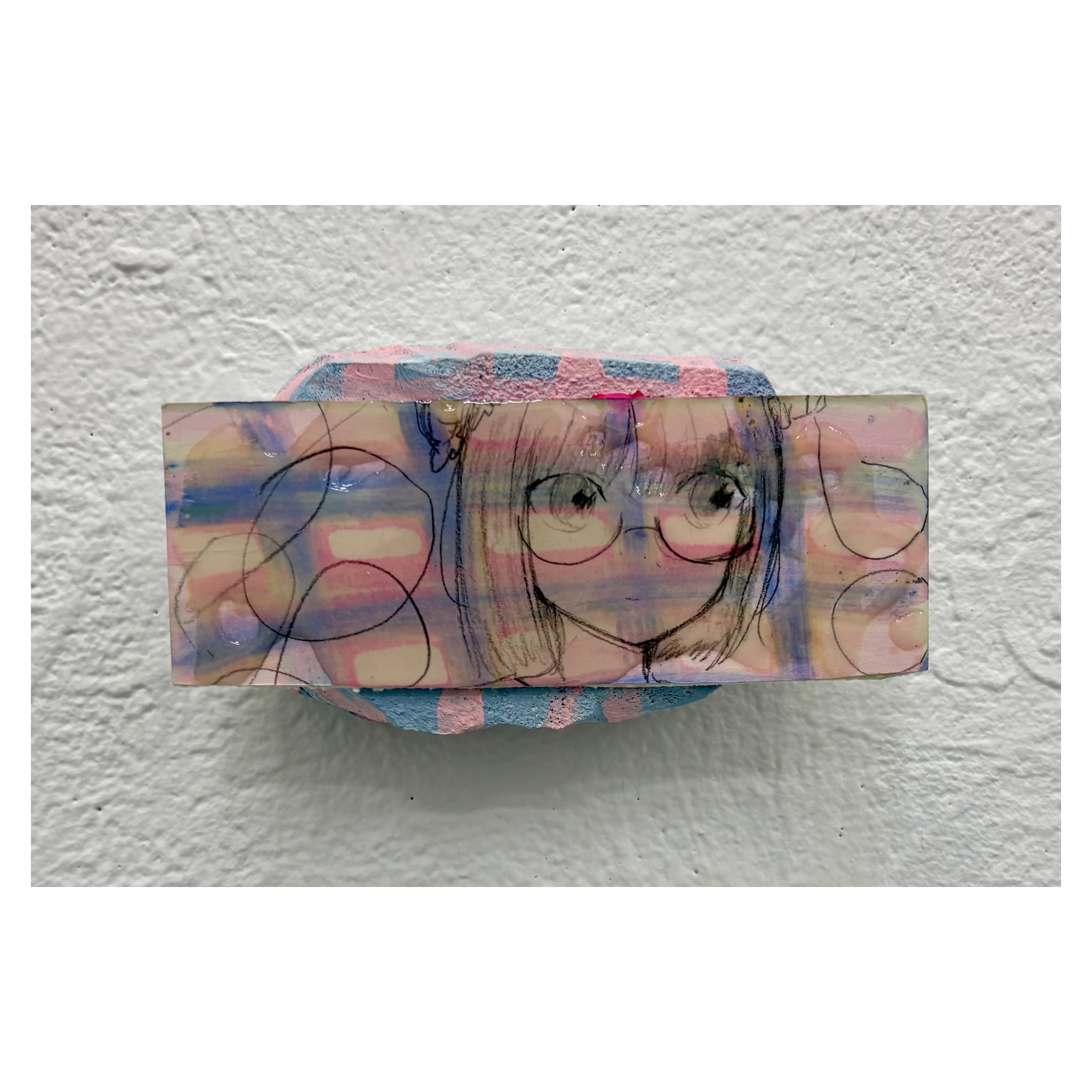 ユ、六萠(ゆ、ろも) yoo romo 1999 広島県生まれ 2019 嵯峨美術短期大学 美術分野洋画・現代アート領域 卒業 宝物、鉱物のような作品をイメージしながら、 キャラクターを用いた絵画×半立体の作品を制作しています。