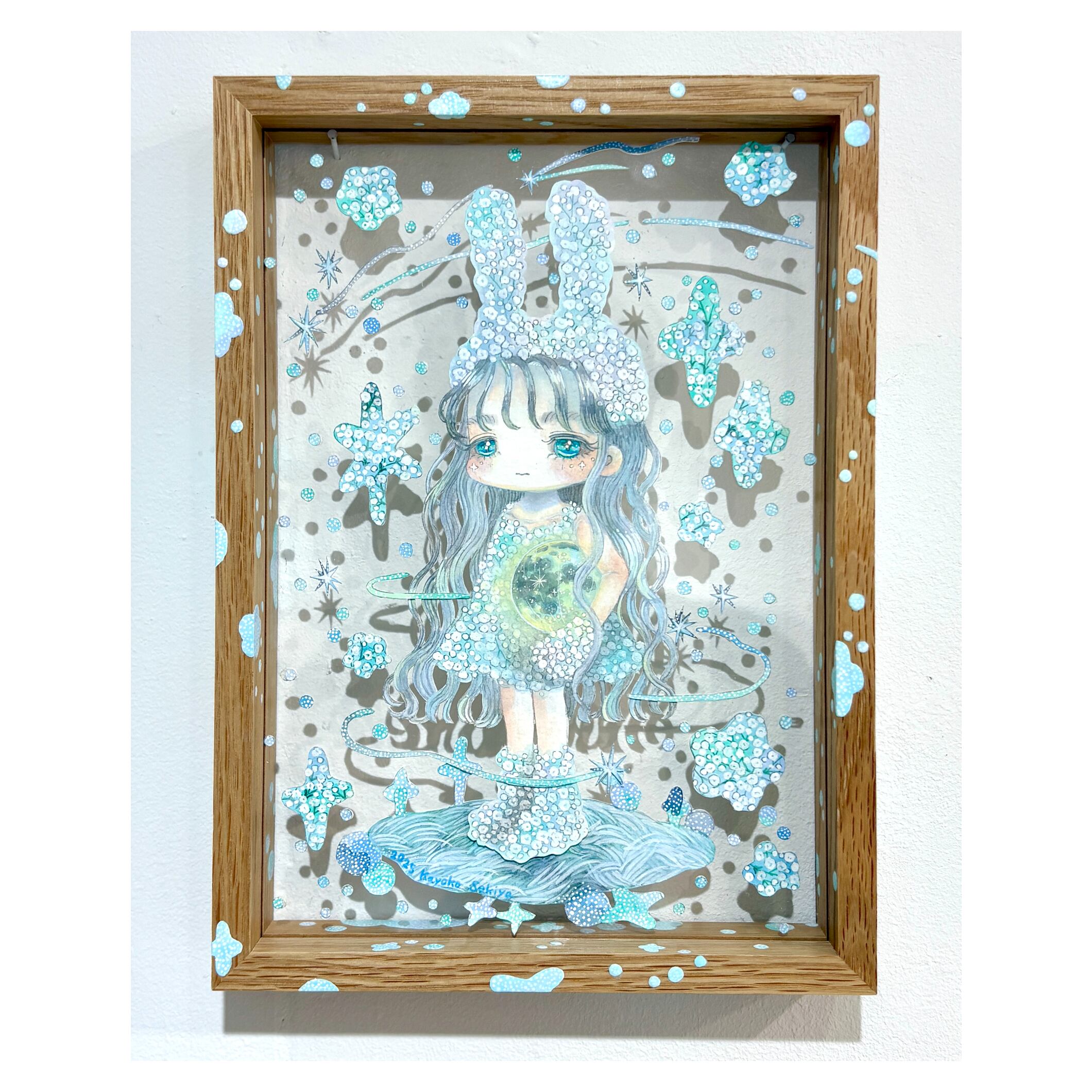 水彩紙、アクリル絵の具、鉛筆、木製フレーム