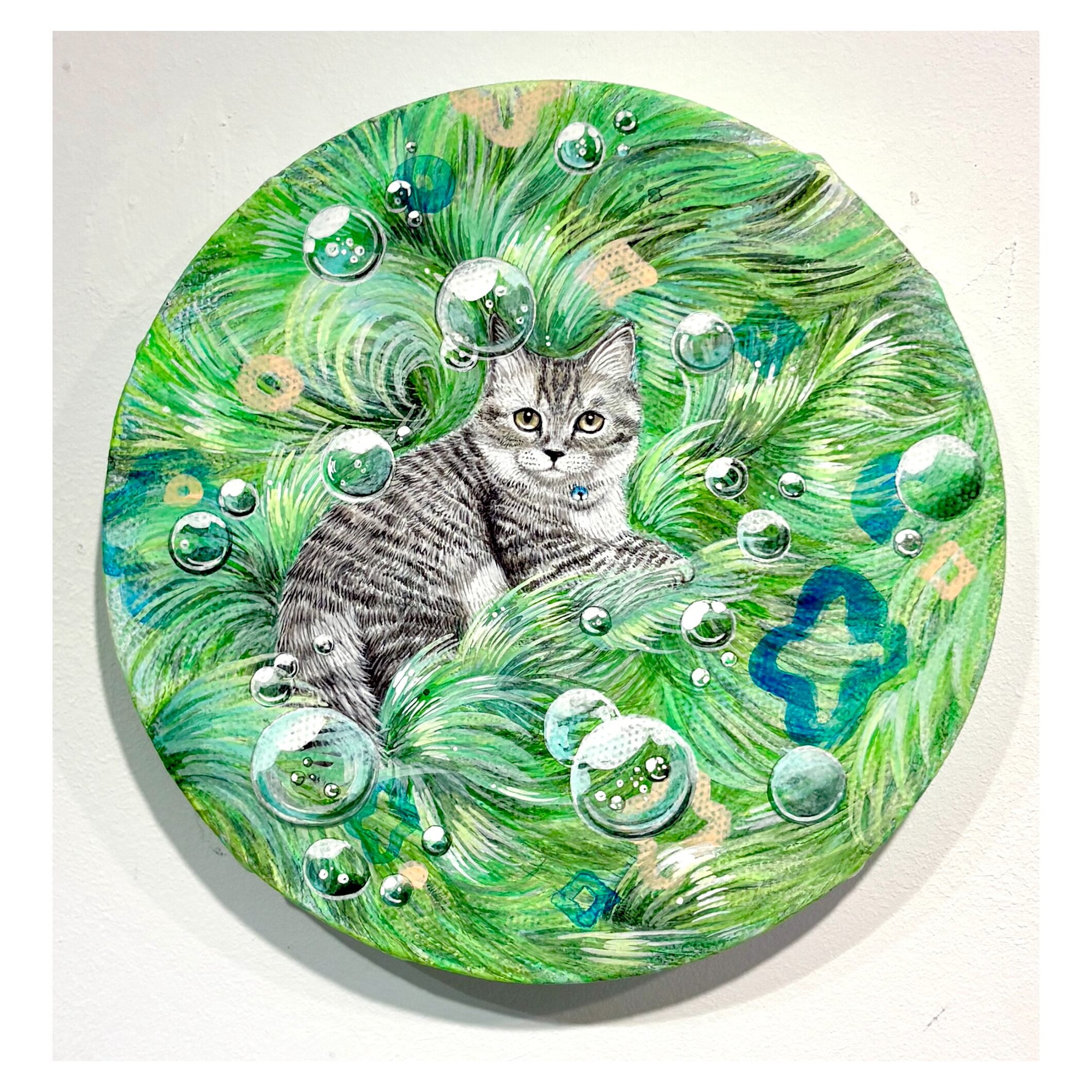 アクリル絵の具を使用し、少女や植物等を用いて自身の心の揺れ動きや、日々を過ごす中で浮かんでは消えていくような想いを記録するように描いている。
