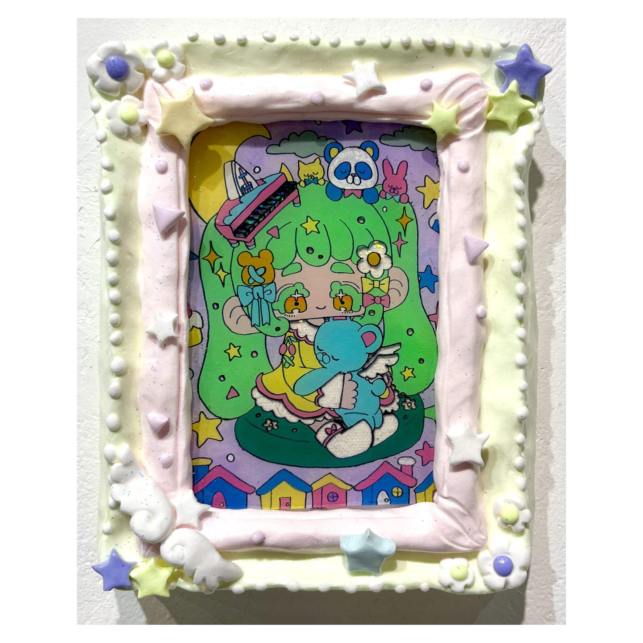 プラ板にアクリルマーカーと超軽量紙粘土に水彩絵の具
