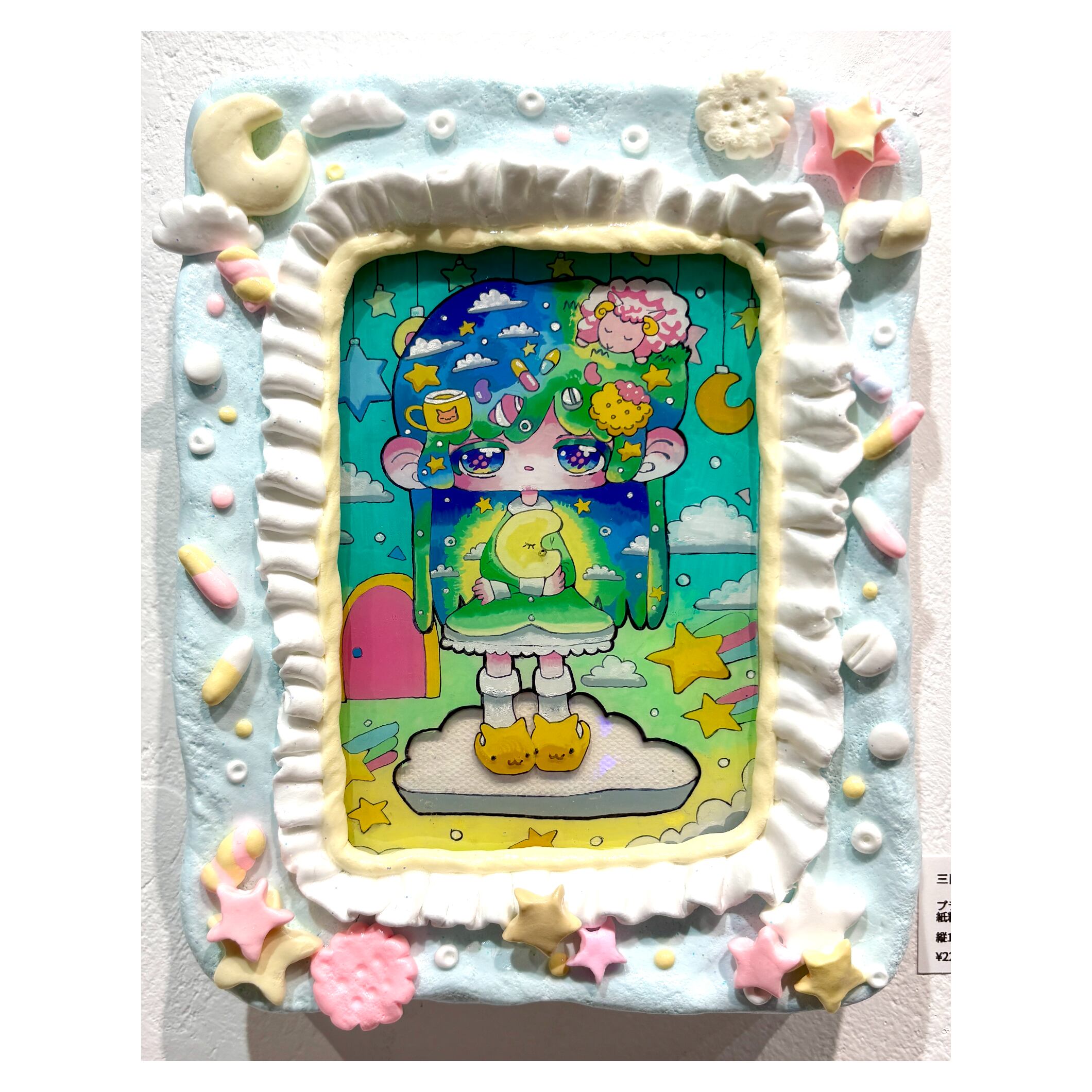 プラ板にアクリルマーカーと超軽量紙粘土に水彩絵の具