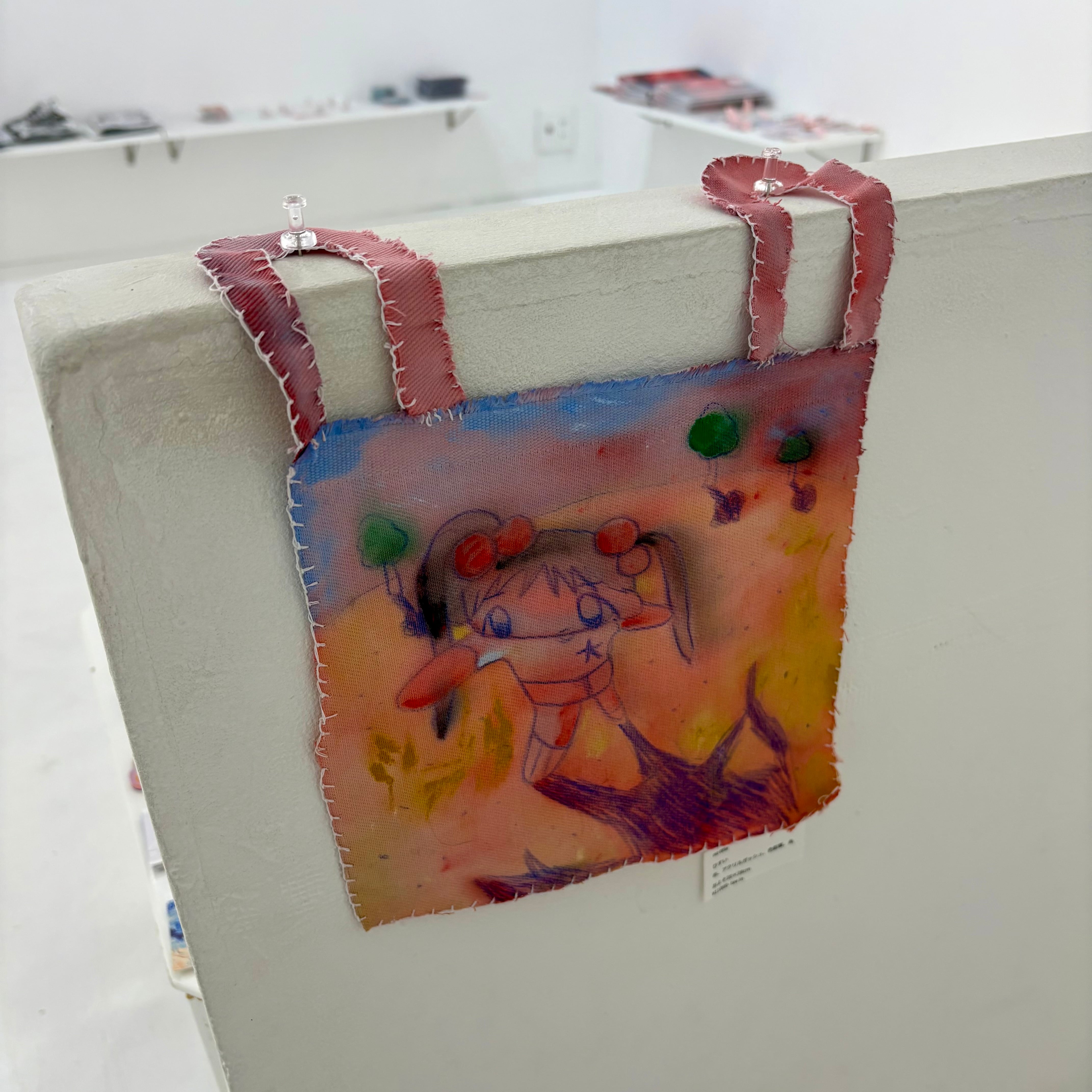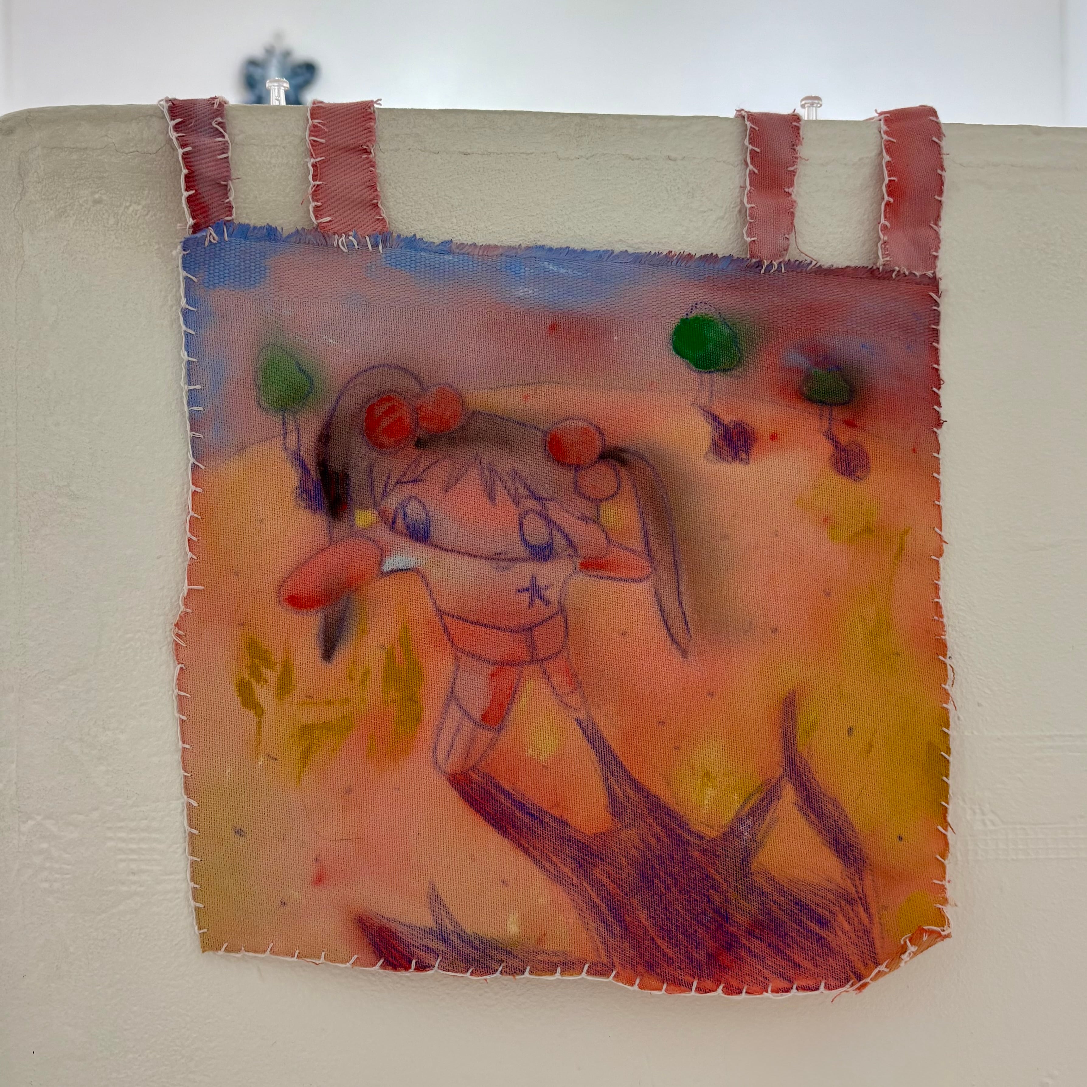 布、アクリルガッシュ、色鉛筆、糸