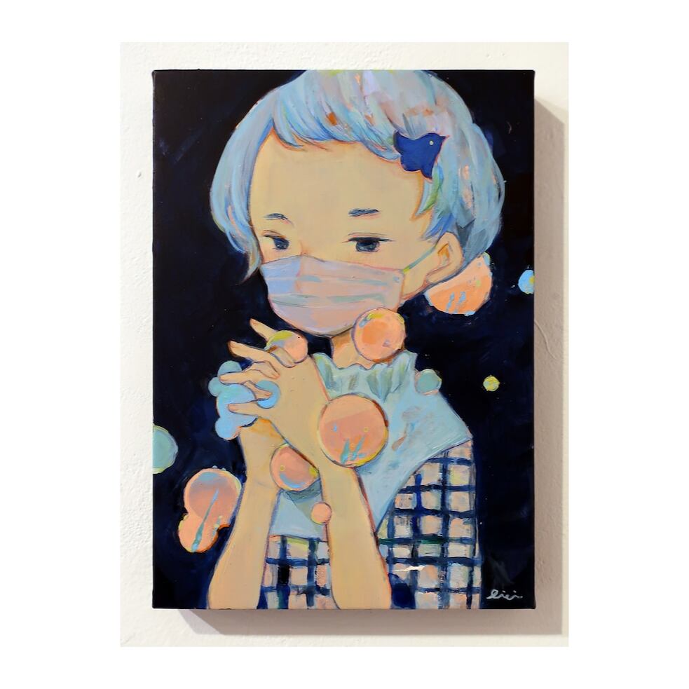 とんでいけたら しおり アクリル/水彩紙 2020年 ¥15,000- +tax / しおり 2014年から活動を開始。 関西を中心に公募グループ展やイベント参加などの活動をしながら、2017年個展開催。 人と人との関係性や、平穏にすぎていく日々と焦燥感のアンバランスさをテーマに、アクリル絵の具を使用して制作を行っています。