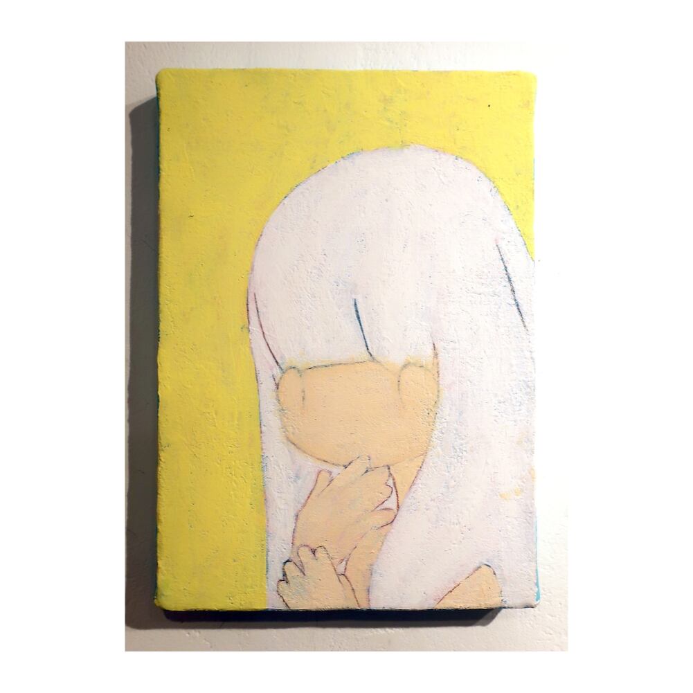 「とまどい」 サムホール キャンバス アクリル ¥10,000- +tax / むくむくしたけもの むくむく画家。 瞳のないひとや"けもの"の絵を描きます。
