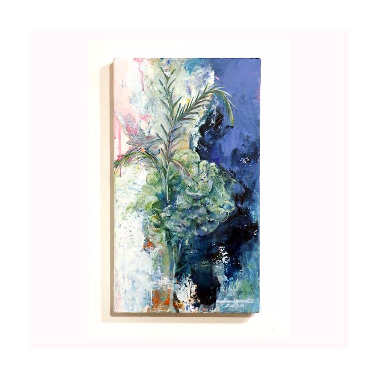 静かにこちらを見つめる アクリル・キャンバス 333×190mm 2020 ¥30,000- +tax
