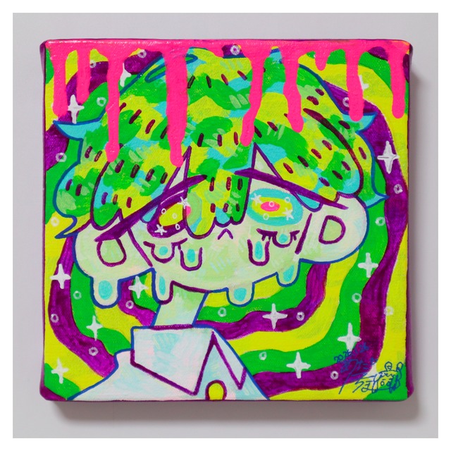 アクリル絵の具で少年少女のような生き物を描く。iPadを使ってデジタルイラストも描く。