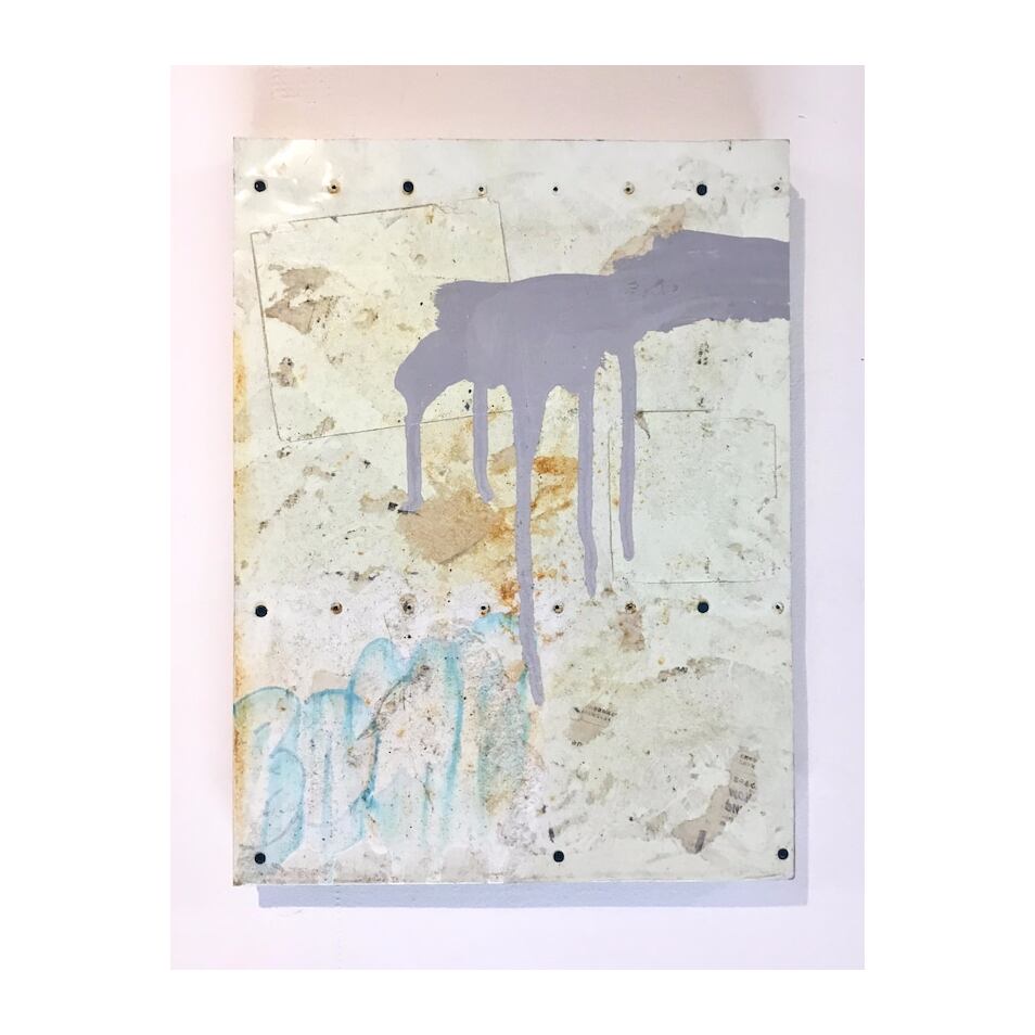 鉄板にペンキ、ラッカー、紙、他