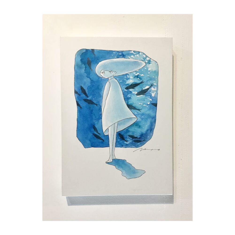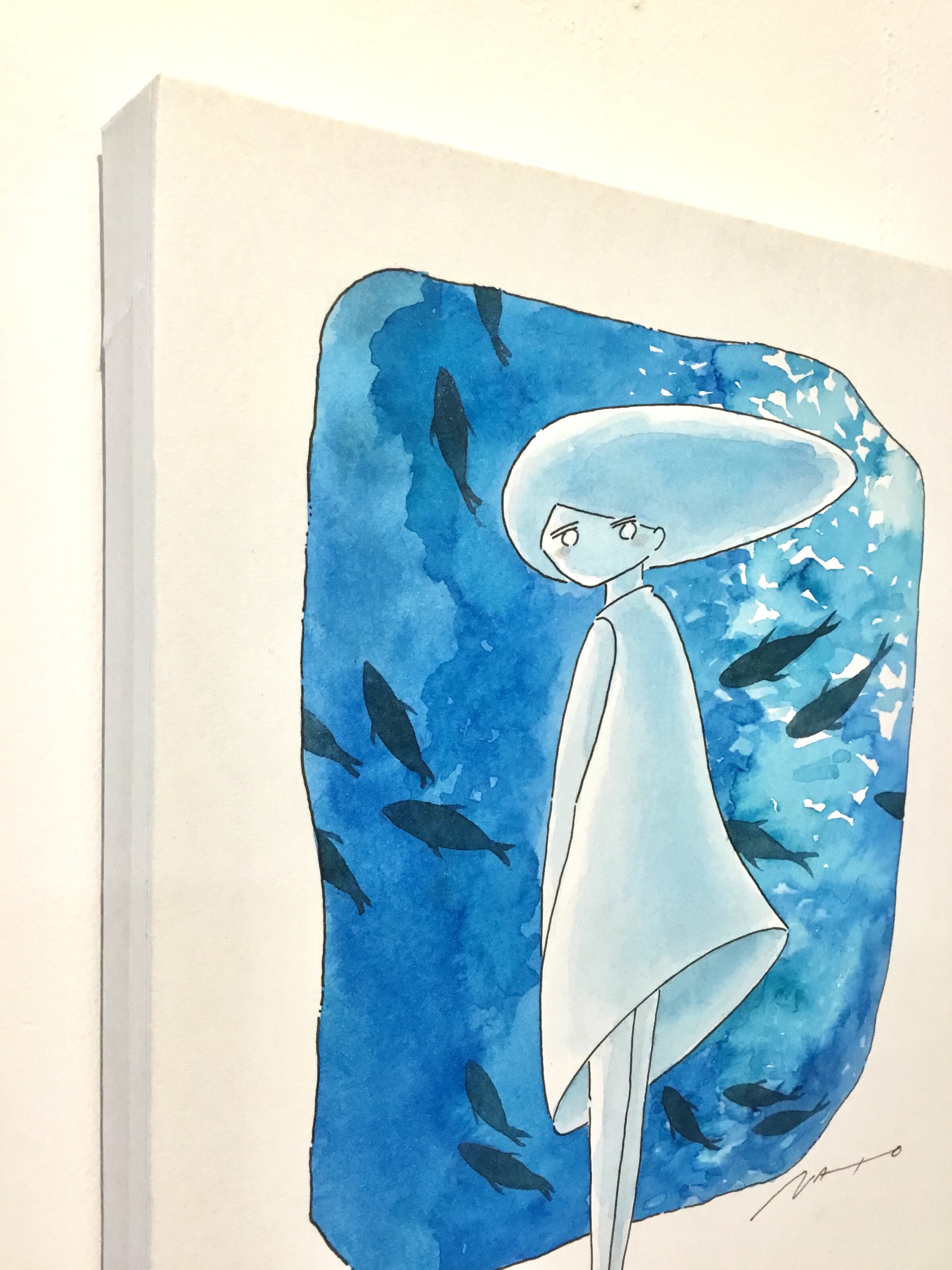 148×210mm 水彩・紙・木製パネル イラストレーションとコラージュ技法の制作スタイルを行き来するアーティスト、サトウナツキのイラストレーション寄りスタイルの作品。抜群のセンスで描かれた女性像。線による描き込みを極力抑え、水彩のグラデーションや奥行きを感じさせる着彩は見事なもの。僅かに使われたパールやラメの質感は是非直接ご覧頂きたい。